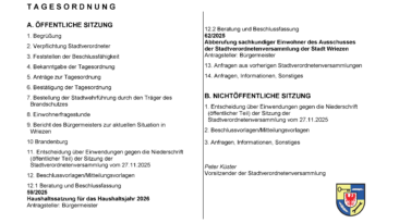 Sitzung d. Stadtverordnetenversammlung Wriezen / 17. Sitzung d. Legislaturperiode am 18.12.2025 19. Dezember 2025